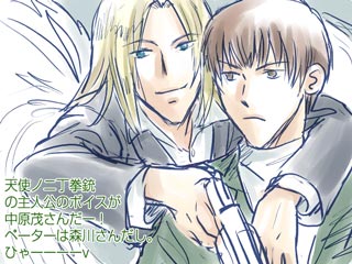 BLCDだと受役が多い所もポイントです。そしてペーターは森川さんなので上下はすでに脳内確定です。って、ボブゲじゃないですが。(笑)(……あ!今思い出した。BLCDで森川x中原の組合せは久能千秋「青の軌跡」シリーズで聞けるんでした)でもこのキャラたち、あの外見でふわふわ真っ白な羽根もついちゃうのねっvとか思うと萌えです。