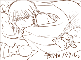 廻ってます、ハ●ル系サイトさんを。いろいろな絵が見れて楽しいのです。でも、結構なネタバレ絵をどーんと描いてるサイトさんも多いので、映画を観る前に見ていたらネタバレやんか!と焦りつつ。特にソフィ。