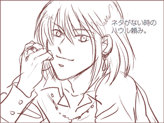 絵ネタが浮かばないので、最近じわじわと好きなハ●ルを描く。登場シーンによってくるくる印象が変わるところも好きです。