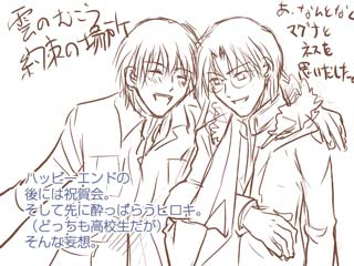 黒十原稿、ペン入れ開始。楽しい。さくさく進んでます。久しぶりなのでどうかな?と思ってたけど。えーと、内容は…気付くとクレメンス率が高いです。そしてフランツの出番がほとんど無い。あれぇ……。(笑)とりあえず、メインの主線を今日中に終えて、明日は背景とかベタとかの書込み、元旦からトーン貼りをする感じで。えーーん、自業自得ながら全然正月らしくなーい。ペン入れが終了したら通販予約の方へメールで御案内、2回目をようやく詳細の連絡を送信しますのでー。