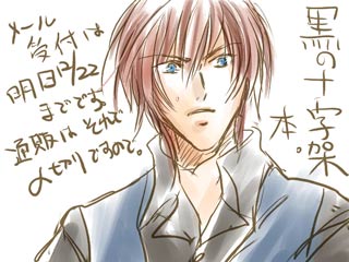 サークル参加しております。持っていくのは今描いている黒の十字架のコピー本。それとオリジナルBLゲーム『DARK MAKER』です。えーと、前日に精密検査を受けますが、結果がなんであれ参加しますのでよろしくです。