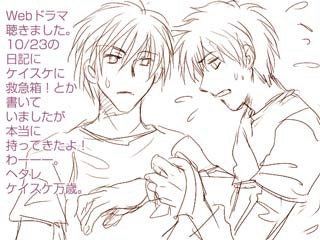 先日の<たとえばこんな〜>にWeb拍手でメッセージありがとうございます。シキアキとケイアキではうちの比率だとケイアキ好きの人が多かったですが。やっぱりイメージしやすいからかな。私はどっちも好きです。発売前の妄想は楽しい。アキラ、ケイスケ、シキと並べると間の楔をすっごく連想しますが、それもまたよし。