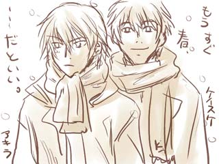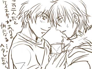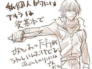 自分の最大萌は当初の予定通り、シキアキ、ケイアキに落ち着きました。……頭が飽和状態です。良いとこも悪いとこも含めて咎狗で頭の中がぱんぱん。レヴューまとめるかなぁ。最近はちゃんとレヴューとか書いてないのですけども。(日記で吐き出して満足してる)シキEDに関してはかなり辛口書いちゃうと思うんですが、過程は萌えたし、ケイスケとかもう変な汁でそうなくらい萌えだし。レヴューよりも絵とかSS描きたい気が。それで早速SSをアップしました。下手すぎてこっぱずかしいけど、ちょっとすっきり。