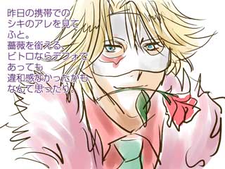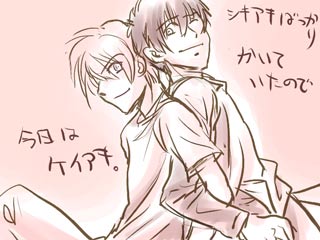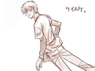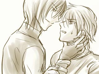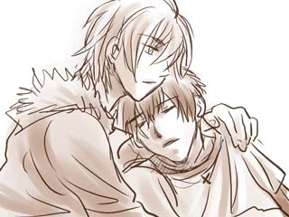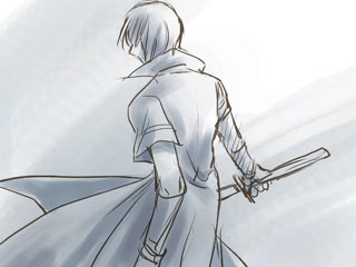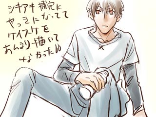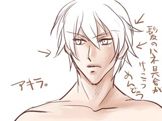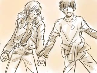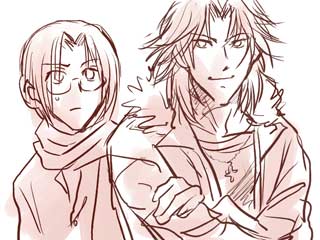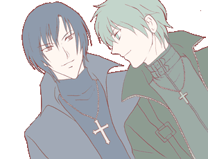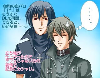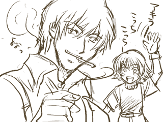 立ち絵をふたつくっつけて並べてみたけど、シキの笑顔が怖いです……。立ち絵の組み込みは完了しました。フェイス変えはこれしか作ってないけど、作ったものの話が短くてなかなか入れる余地があまり無く…。特にこのシキの立ち絵/笑顔は一瞬です。因に、