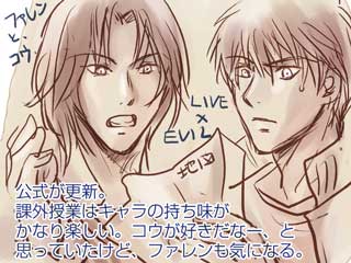 昨日作っていた背景は仕上がったので、画面キャプチャしてゲーム制作サイトのブログにアップしておきました。縮小してるんで粗は分かりにくいです。ふはははは!ついでに更新、と咎狗ページのリンクページだけ弄りました。(それを更新と呼ぶのはエライ卑怯)あまり巡回できないけれど、気に入ったところはブックマークページに入れていると周りやすい。全ては自分の為。(笑)MacのIEのブラウザ−はどうにも「お気に入り」の整理がしずらい。というか、私が色んなジャンルでブックマークしまくるので、時間を置くと何がなんだかか状態です。こうしてページを作っておくと便利ーー。黙って貼るのはイカンなーと思うものの、うちって何のジャンルなのか不明(BL,BLG系ってだけなのは確実なんだけど)なので、どうにも申告しずらいの。