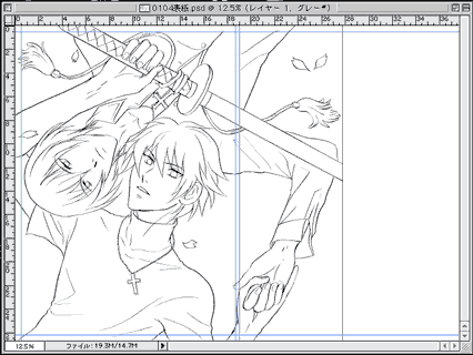 2006年度、始業して2日めにして20時まで残業ですかい。今月は土曜休みは1回だけなので、急に明日もらうことになりました。とりあえず、午前中に整骨院に行く!!年末から首が右に曲げると痛いんですよね。当たり前ながらマッサージでは治らなかったので……。 とりあえず、表紙完了。今晩は下絵を3〜5枚が目標。日曜はイベントなので作業が止るけど、月曜が祝日なので、その日に10枚を目標。目標設定しないとすぐにサボるので、一応。多分、トーン処理に多めに時間を見ておく方がいいのでなんとか下絵とペン入れを詰め込みたい。今度こそ、フェアー使うんだもん!(前回、フェアーの締切りに間に合わなかったので)締切りは1/30(月曜)午前中ですが、FTPで今回も入稿しようと思うので日曜の夜が最終リミット。