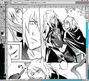昨晩で一応線の修正とか黒ベタが終った。今日からトーンワーク。 コノエの頭はトーンなしなので楽ができる。(アキラは貼るけどね) ライがマント有り絵のほうが多いためにあのインナーの模様をトーン貼りするのも少なくて済みそうなので、なんとかなりそうかな。 FTPの入稿予約は入れておいた。 表紙とタイトル、まだ思い浮かばない。 (仮)『a l/o/v/e s/o/n/g』なんて恥ずかしいタイトル、どうにかせねば。 (エゴのあの曲が好きでつい出来心)