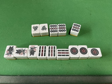 最初、桃の調子が良く、 後半、あたしと千さんが追い上げました。 あたしはまた変わった役で上がることができました。 それは混老対々(ホンロウトイトイ)といって、 数牌の1、9と字牌のみで作るもので役満でした! 配牌時に九種九牌で流したいと思いつつ、 被っている牌もあったので、流さずトライした結果です。 だから麻雀って面白い。