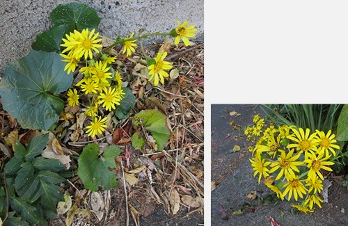 ツワブキの花の季節。 枯草の多い日陰の歩道を照らしているように転々と、この季節に鮮やかな黄色がほっこりする。 来年の春には、ゴルバ様がまた山の方にウォーキングに行ってツワブキを採ってくるんだろう... 皮を剥くのが大変だけど、美味しいんだよね。 灰汁で指先が黒くなるけど、酢でゆすぎながら剥けば大丈夫... 子供の頃祖母に教わった。