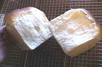 それでも割ってみたら中はしっとり... 小麦粉とイーストとバターのシンプルな味と香りは手作りならでは...。( ̄▽ ̄)v