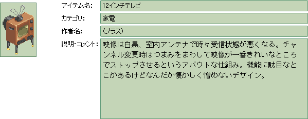 【コレピク】 ![]() 新商品ご案内!!! →左から ● 全財産 ● ピクの山 沢山買って沢山積むとセレブな気分に!(必死!) ![]() 商品ご案内!!! →左から ● 釣り餌・大 ● 空瓶 ● 釣り餌・小 ● 釣り餌・小・多 ● 浮き ● 雑誌・フィッシングタイガー(廃刊) ● 雑誌・映画ドラゴン(廃刊) ● 牛乳 ● 袴田さんの日記 ● 貰った名刺 ● 貰った手紙 ● 手荷物 ● プレゼントボックス 細々販売中!袴田さん小物達。 販売物は全て3ピクとなっております。 2chキャラも沢山販売しておりますので遊びに来てやって下さいませ。(土下座!) 椅子を作ったのですが大失敗してしまいました。〓■●_難しい…。 ● 本田ニキーナ情報 ○ テレビを見る。 ○ コロコロで掃除する。 ○ 冷蔵庫を拭き掃除。 ○ おもちゃタンスをハタキで掃除。 ○ ベッドの上で猫変身で睡眠。 か・可愛い***他人様のお家で寝てしまいました。マイハウスはベッドが入り組んだ場所にあるから見る事が今まで出来なかったのか…〓■●_ 【牙狼 GARO】 六話目「美貌」今回のクリーチャーはグロ系でした。 主人公のライバル登場!細い人だなー。 【オリンピック】 エキキビジョン!世界のトップスケーターの方々は本当に凄いな…。プルシェンコ…本当に凄過ぎ…。生演奏豪華!しかしゴールドメダリストはアンコールまであって大変だァ。フィナーレまで感動感動感動でした。美しいなー。 所でアイスダンスとフィギュアスケートは違うの? 荒川選手と村主選手の演技は何度も再放送しているのに安藤選手の演技は一度も再放送しないのは何故?