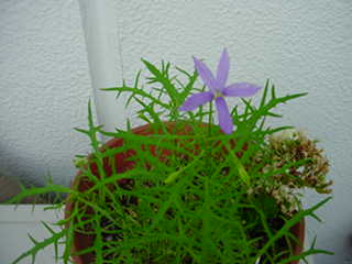 小さな専用庭で蒔いた種から芽が出始めてます。あとは、ハンギング バスケットに植えた花の苗、花が咲き始めています。そうそう、バジルも 芽が増えています。本葉が出始めている苗もあって「ああ、バジルだ!」 ってわかります。虫に食われず大きく育つといいなぁ。 明日は朝顔の支柱を調達にしに行こうっと!