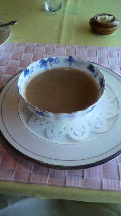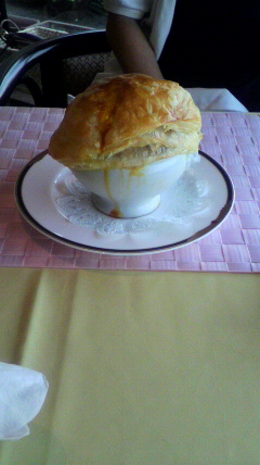 次のスープは、私が栗のポタージュ。お友達がパイ包みのきのこスープ。