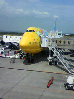 この飛行機に乗ったよ。ポケモンジェットだぜ!