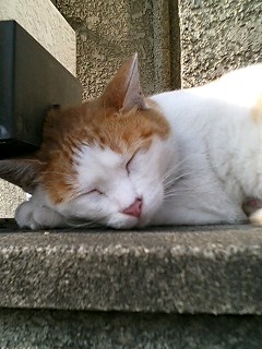 前回来た時、 あれだけよく目にしていた発育のいいおっとりとしたニャン達は このうだるような暑さから逃れるためか、 すっかりその姿をくらましてしまっていました。それはもう見事なほど(笑)。 パン屋の看板ニャンコに会えるかと期待していたんだけど。残念。