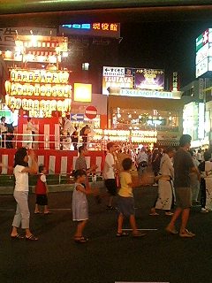 3日間ぐらい続いてた盆踊り大会の最終日。 その終わりも近い頃だったので、 みんなこなれてきているのか老若男女が恥ずかしがることもなく 思い思いに踊っている姿。なんか美しいなぁと思いながらしばし見とれていました。