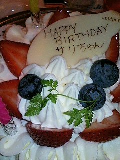 今日はしまちゃんの初r・・・(以下略)突入誕生会もあり、 なんと、しまちゃん達が私のケーキまで用意してくださってて(2つも!) 感謝感謝です。本当に本当に幸せな夜でした。