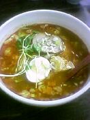 それから・・・今日はもう一つ写真・・・ 夕飯「ラーメン食べにいこう」ってオバサンに言われて 近所に新しく出来たラーメン屋に出かけてきた・・・ ラーメン屋が出来たのは・・・16日 まだ本当に新しくて・・・オープン記念で麺類半額だった で、店の名前が付いた「おじゃんらーめん」ってのを頼んだ どんなラーメンなのか・・・写真もないし・・・ でも・・・メニューの一番先に書いてあったんだから・・・ ハズレは無いだろうってことで・・・ それが・・・これ