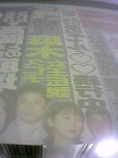 これは電車の中吊り広告を裏側から撮ったもの いつも・・・中吊りとか全然興味ないけど たまたま・・貫通路のドアのそばに立ってて ドアにもたれながら・・・ふと上を向いたら・・・中吊りが逆さまに見えた 書いてある見出しは・・・くだらないことなのに なぞなぞを解くみたいに・・・逆からの眺めを楽しんだ 俺って・・・ちょっと変か?(笑)