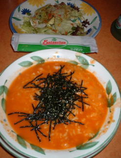 今日のメニューは小海老のリゾットオーロラソースと、セットサラダ で・・・写真には無いけど、シナモンフォッカチオも食った