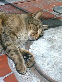 堂々と店先で、昼寝する社長・・・ 肉球が、たまらなく可愛いだろ