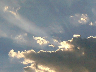 今日の空は夕方の空・・・ 雲の後ろから木洩れ日が溢れてる・・・