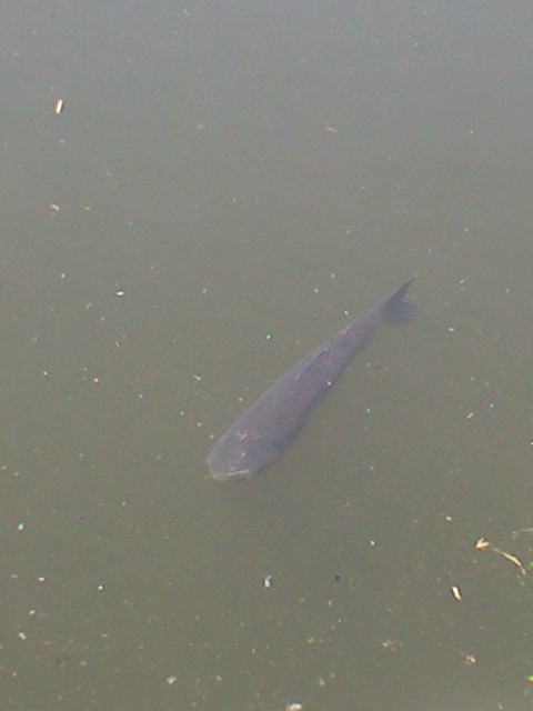 この写真は、沼公園の鯉吉 奴のサイズは・・・ものすごくでかい 多分、全長50センチは軽く超えてると思う