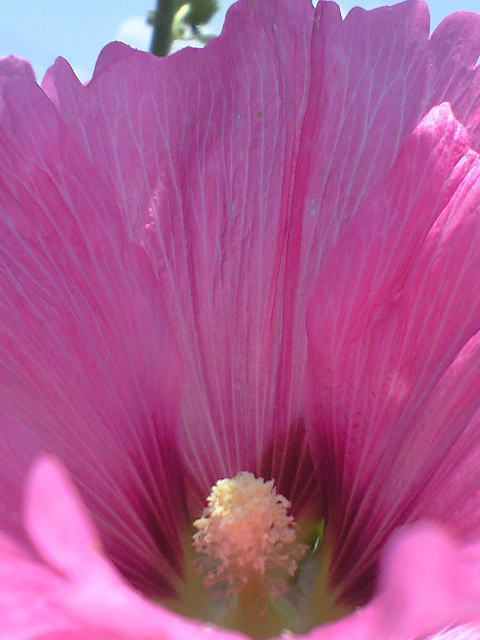 タチアオイ・・・・ 色は、この他にも、白、赤、黄、オレンジなどがあるらしい この花は・・・伸びるのが早くて 最盛期には俺の背より高くなる ちょっと生意気だ・・・・ でも、花言葉で納得