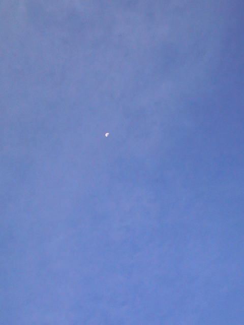 でも、こんな空を見ながら歩く朝は・・・かなり気分がいい 真ん中の上のほうに・・・月がいる