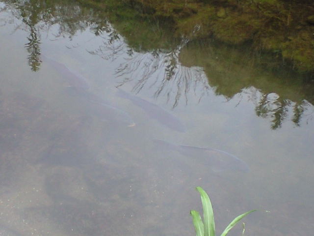 鯉吉川でゆうゆうと泳ぐ鯉吉群 全部で30尾くらいの大群でかなり壮観 でも、写真では非常に地味・・・・・だ