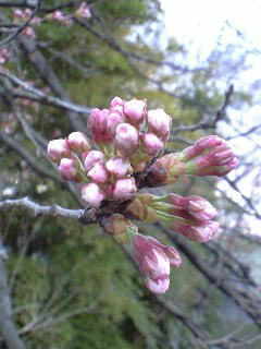 去年は、ひとかたまり全部一気に花開いた 今年は・・・布団から出られずにモゾモゾしてるような雰囲気だな でも、それも解る気がする なにしろ・・・寒いし天気悪いし、と思ったら 恐ろしくぬるい南風が台風みたいに吹きまくるし 人も・・・桜も、どうしたらいいか微妙に迷う