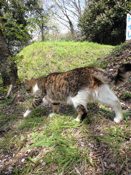 これは、昨日出した写真の猫の後姿・・・ 公園で出会う猫には、様々なタイプがいて 人に擦り寄るくらい慣れている個体もいるし 餌だけもらえたらそれで人とは関わりたがらない、そういう個体もいる