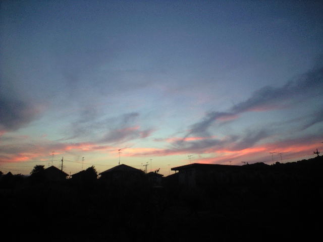 7日の夕焼け・・・ この写真の10分前は、もっときれいな夕焼け空だった この時間の空は、本当に刻一刻と色が変わる ただただ、ぼーっと眺めているだけで、案外幸せだったりする