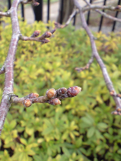 ・・・多分桜だと思う ん、きっとこの蕾の形状はソメイヨシノだと思う ただ咲いているところを眺めた記憶が薄いからちょっと自信がない