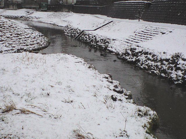 あまり綺麗には撮れなかったけれど 雪景色の鯉吉川