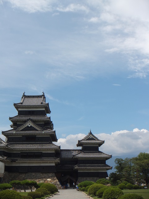 この夏、長野県に行った目的はこいつ 国宝松本城を観たかったから 城の一部分を補修していて白いシートがかかっているのがなんとも残念