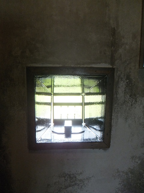 松本城へ入って、階段を上がって最初のフロア いわゆる現代風の二階部分みたいな場所の壁 なにやら穴がいくつも開いている