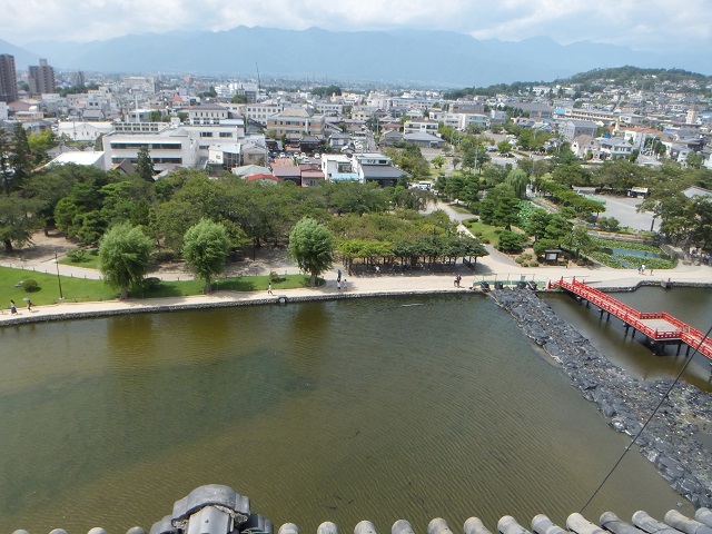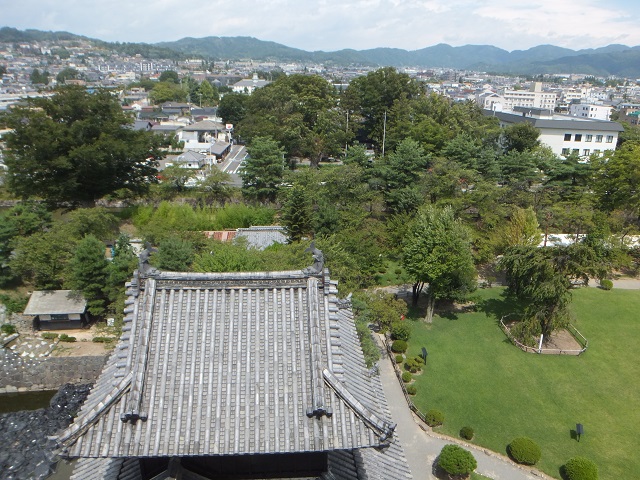 この写真は、松本城天守閣の中からみた、東西南北の景色 日本的に書くと、東西南北(とうざいなんぼく)なのだけれど 松本城内部の看板の説明通り、わかりやすいように、東、南、西、北の順番