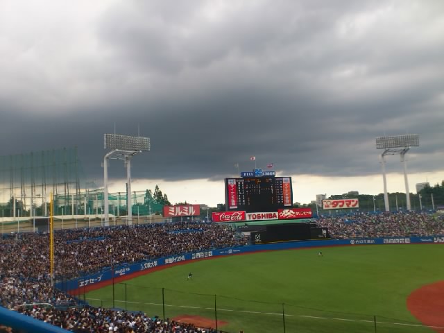 ってことで、予告したとおり、6日土曜日は神宮へ行ってきた 野球は面白い 何が面白いかと言うと、やっぱり、何が起きるかわからないところとか 屋外でだだっ広い空を眺められるところとか そんなオープンエアの場所でのビールが最高とか いろいろな理由があるのだけれど、やっぱり、野球は選手が目の前で本気で闘うものだからって事なのかもしれない