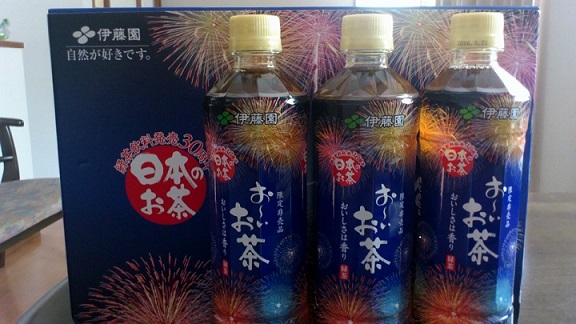 この限定パッケージの茶は、10本届いた 花火の色が綺麗な茶のパッケージ 花火大会は行けなかったけれど、とりあえず10本も届けば御の字だな