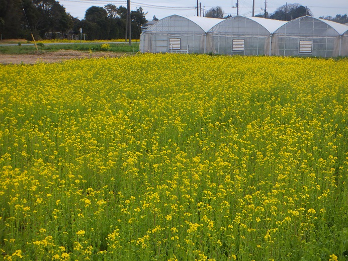 菜の花畑 これはイチゴ狩り農園で撮影 イチゴ狩り・・・狩る気満々で行ったのだけれど、ものすごい混み様で何時間も待ちそうだからやめてイチゴだけ買ってみた