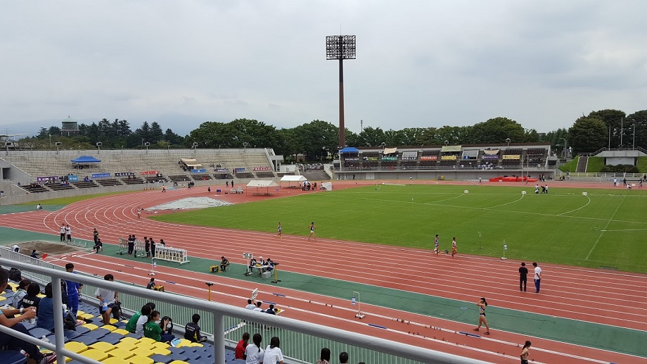 赤城山を下り昼飯を食った後、まだ雨も降っていないし、ちょっと公園へでも行くかってことで、敷島公園って場所へ行ってみた 公園ってのだから、散策できるようなところだろうと思っていたら、駐車場のすぐ横に大きな陸上競技場があって、そこで何やら音が聞こえる 入り口も開放中だし、サクッと覗いてみたら、26大学対抗陸上競技大会が開催されていた