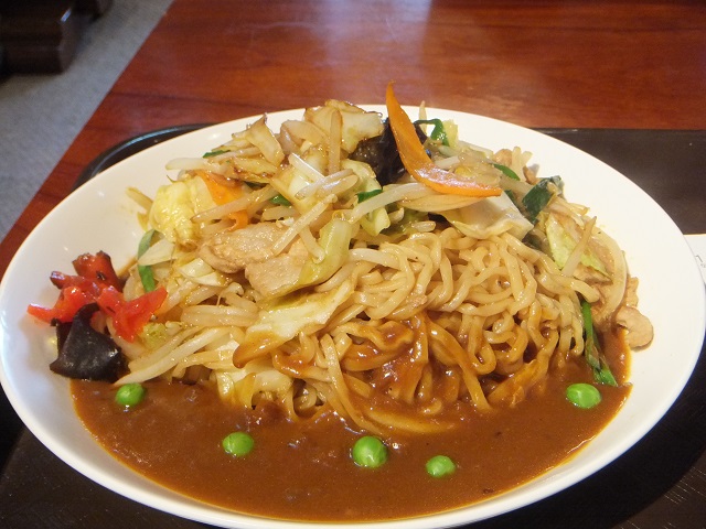これは、城で花を観た後に食べた昼飯の会津名物?カレー焼きそば なんと言うか、物凄い食べ物だった かなりうまかったんだけれど、物凄いの連発なくらい凄い食べ物で、腹いっぱいになった もう一度会津へ行ったら食べるかと聞かれると返答に困るが、食べてしまいそうな気がする