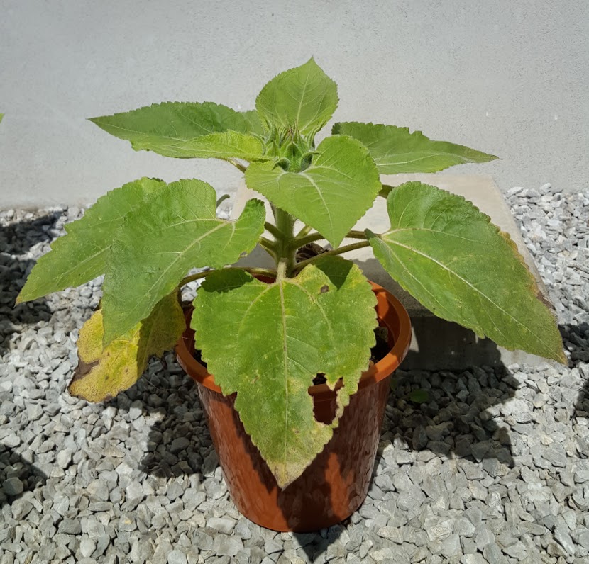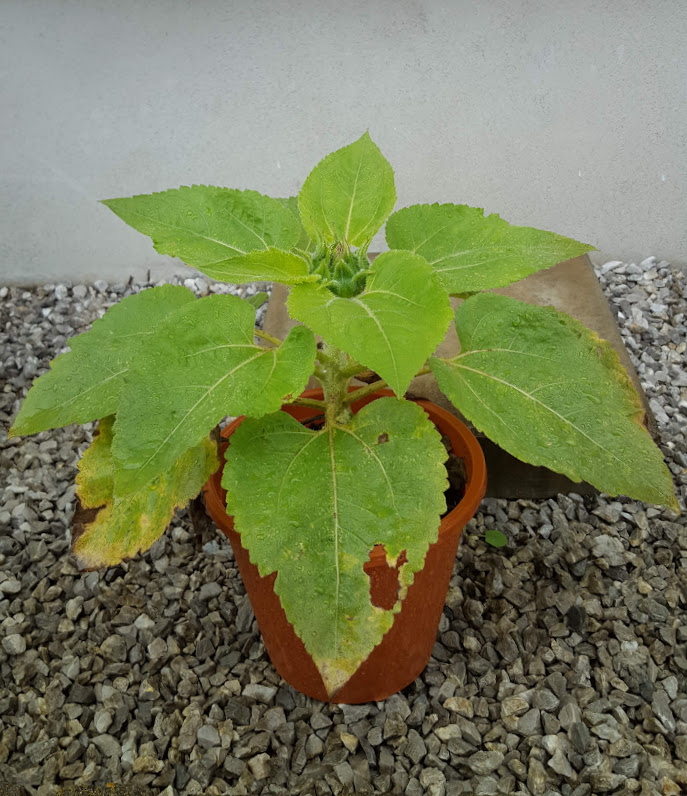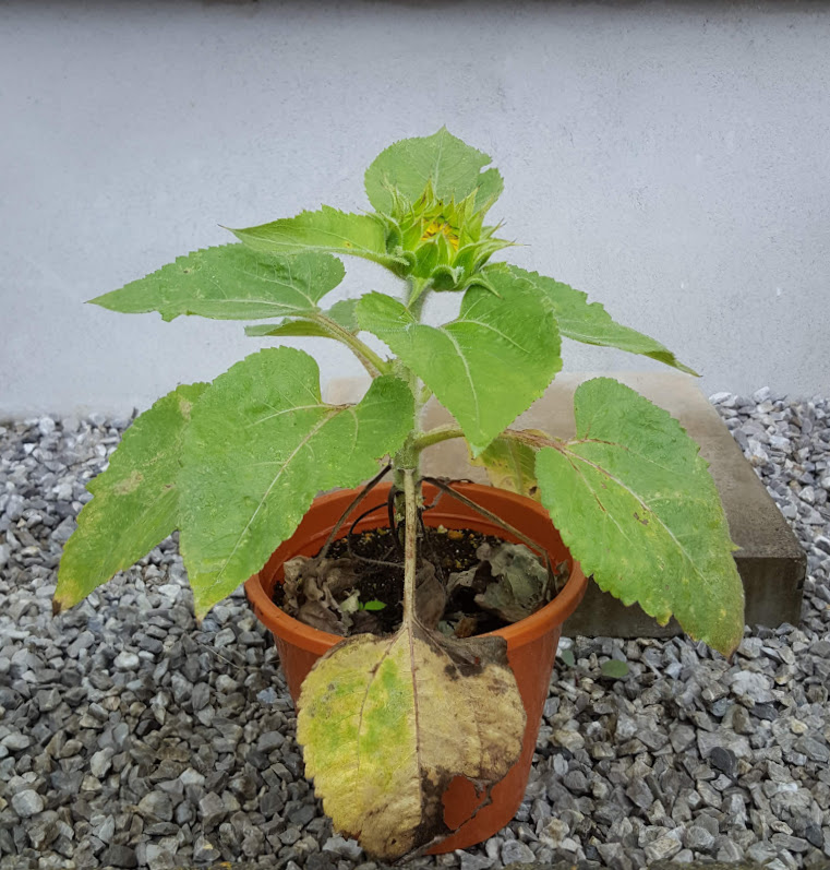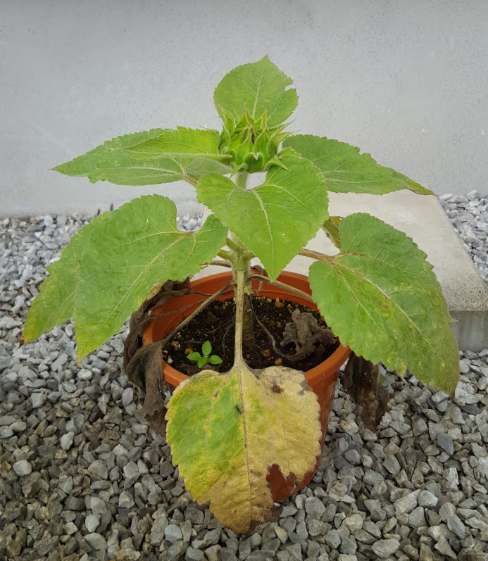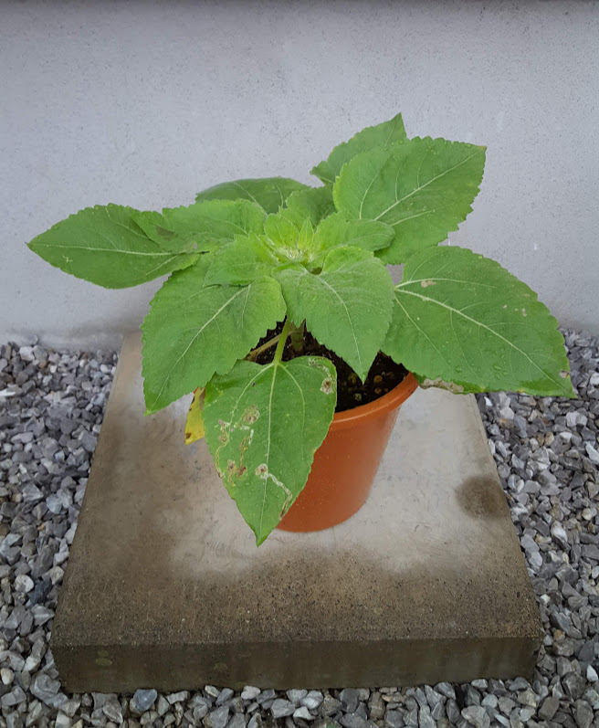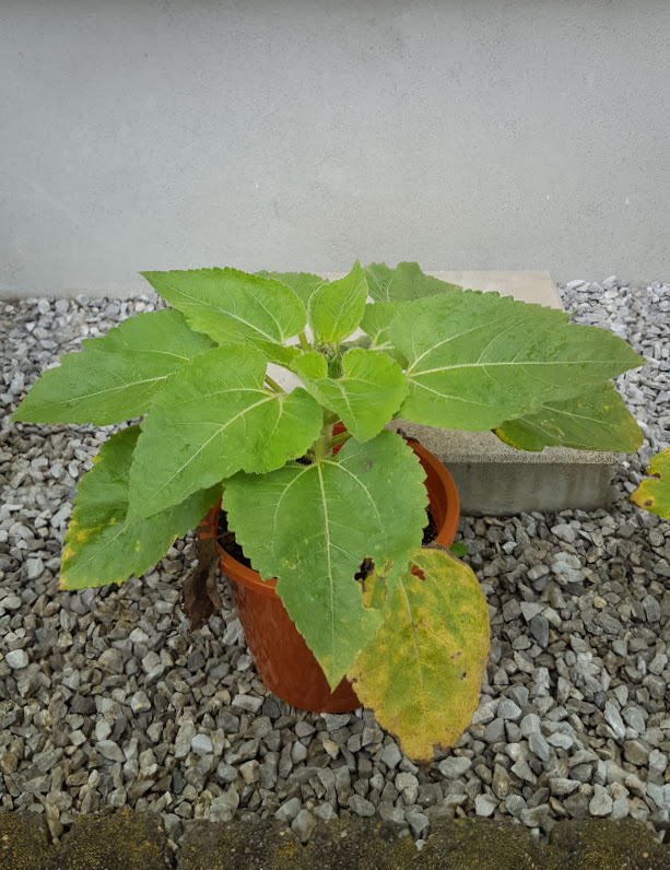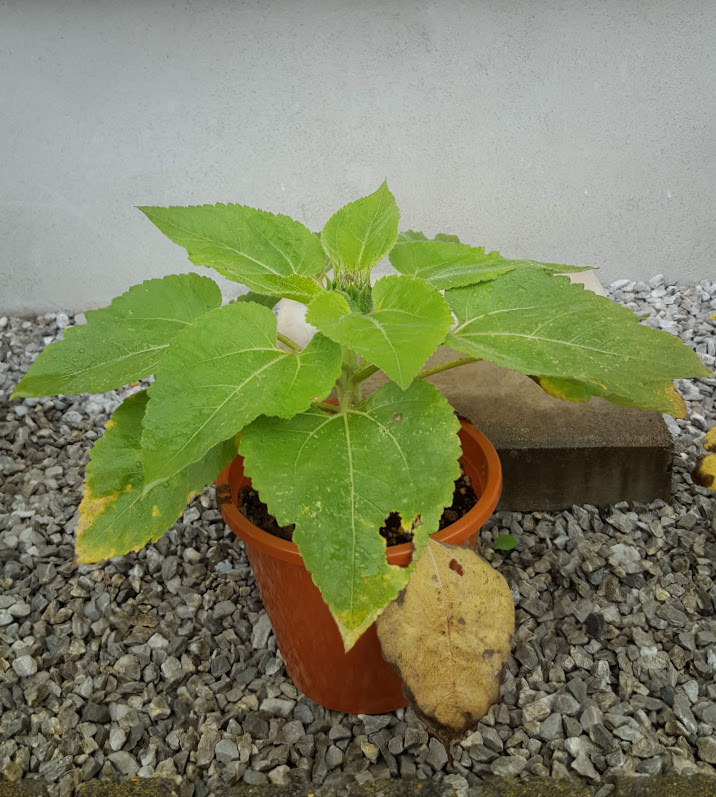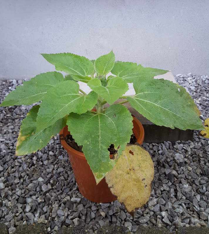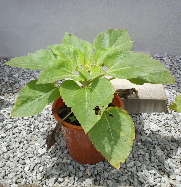 葉っぱくんは、下の方の葉っぱが黄色くなって枯れてしまう 園芸部に肥料不足を指摘され肥料を与えるようにしているけれど、どうも黄色くなる ずっと雨が降っているから水不足は心配ないと思うのだが、今度は日照不足なのだろうか