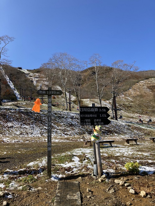 10月31日土曜日の谷川岳 澄んだ空が眩しい 今までになくいい天気で、正直、本当に感動した 前日冷え込んで降った雪が残っていて更に嬉しかった