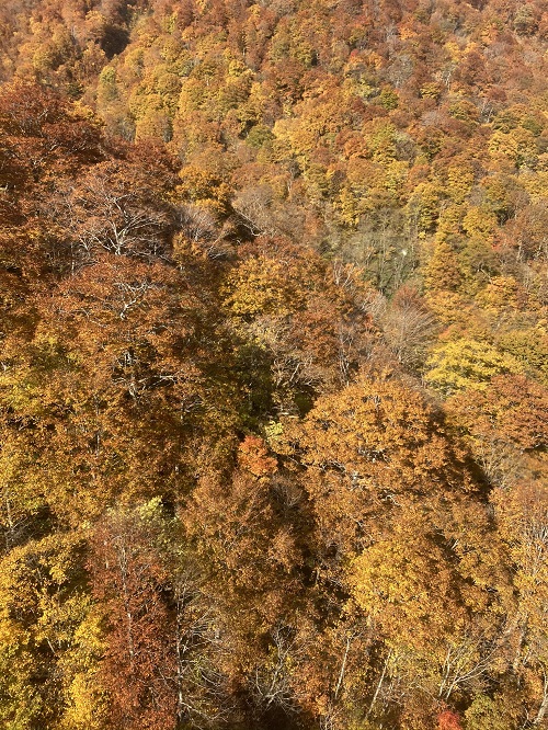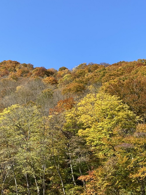 これは、万座温泉の空吹(からぶき) 宿から見える風景 硫黄泉の宿で、物凄く臭かった 温泉は濃度が日本一濃い硫黄泉らしく、本当に恐ろしく温泉らしい湯で、長湯すると皮膚が溶けてしまうだろう 何度も入ってのんびりするという温泉ではないが、薬効はありそうな湯だった