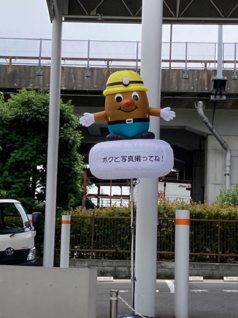 車に乗っていたから一緒には無理だったけど、写真だけは撮ってみた 何かの会社に置いてあったキャラクター 工事関係?かと思う 見た感じかなり高い位置にいるボクだから、一緒に写真を撮るとなるとボクの足元にって感じか?