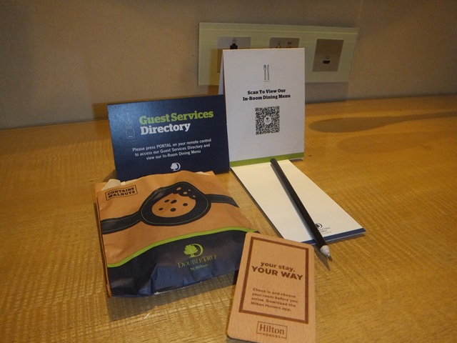 そんなこんなで、宿について部屋に入ってようやくカメラを取り出した ヒルトンはチェックインでクッキーがもらえるらしく、指先に伝わる温かさで癒される