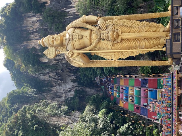 マレーシアのツアーで必ず見かける写真 このカラフルな階段は272段 勾配が結構急で上るのは良いけれど下るのが怖い だけど、信者はこの階段も裸足で行くんだな 神様の前では靴なんぞ履いちゃならんーってことなんだろうな これは確かイスラム教でも同じ 靴は脱いでいくらしい