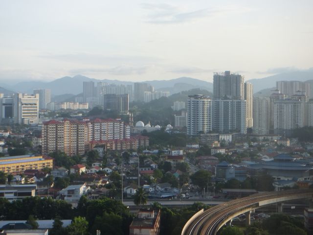 部屋から眺めた朝の街並み 遠くにモスクみたいなのがみえる 眼下には地下鉄?の線路 泊まった場所はアンパンパークって駅の近くなんだけれど クアラルンプール(マレーシアの首都)の最大の繁華街からは少し離れた場所 イメージとしては・・・山手線の中の一つなんだけど、ちょっと喧騒離れたとこみたいな感じ?